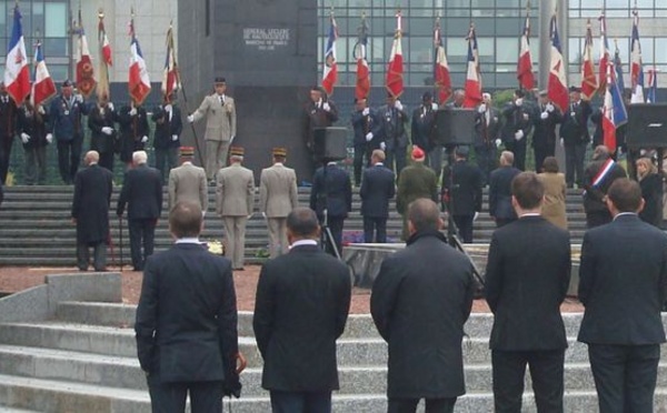 Peu d'élus parisiens lors de la cérémonie militaire en hommage aux soldats de la 2e Division Blindée organisée au pied de la statue du Maréchal Leclerc de Hauteclocque Commandant de la 2ème DB, place du 25 août 1944 à la Porte d'Orléans. Les élus se...