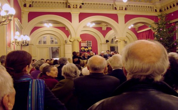 L'incontournable maire, à droite, du XVIe arrondissement. La foule se presse le jeudi 10 janvier 2013 à partir de 18h à la mairie du XVIe arrondissement de Paris pour la cérémonie des vœux.