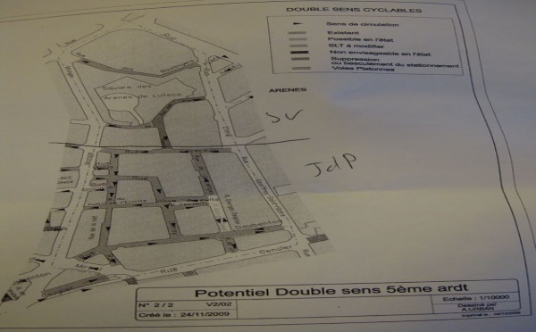 D'un côté, le décret 2008-754 du 30 juillet 2008 dispose qu’avant juillet 2010, sauf dérogation, le double sens cyclable doit s’appliquer dans toutes les rues en zone 30, soit dans 80% du 5ème arrondissement. De l'autre, le choix politique de...