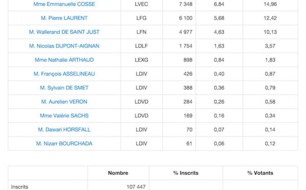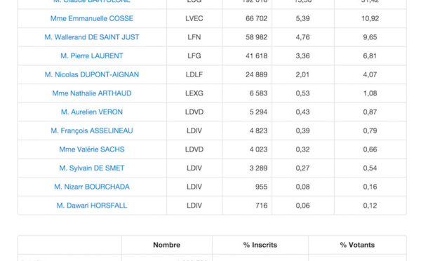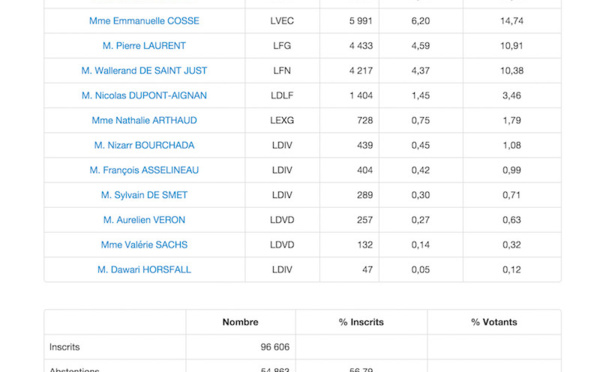 Suite aux premières estimations en direct de la Préfecture de région Ile-de-France qui donnent les Républicains en tête, les résultats définitifs confirment le score des Républicains. Avec seulement un tiers de bulletins de vote dépouillés à 22...