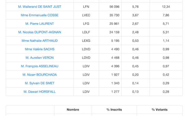 Les premières estimations en direct de la Préfecture de région Ile-de-France. Dans le 77, les bureaux de vote ont fermé à 18h. Le Front National arrive en tête avec 33 % des suffrages exprimés. En deuxième position : Les Républicains avec 25 %. En...