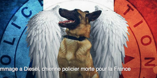 Diesel, une chienne de la race des Malinois, perd la vie a sauvant celle des hommes du Raid. Diesel, 7 ans, est le premier chien de ces policiers d’élite mort en service lors de l'assaut du RAID contre un appartement de Saint-Denis (93) d'où...