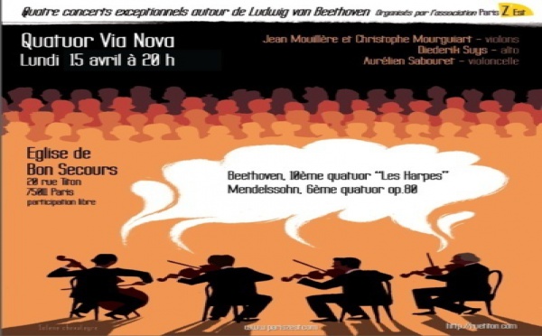 Dans le cadre de la série de quatre concerts exceptionnels « autour de Ludwig van Beethoven père du Quatuor Romantique» qu’il donne à Bon Secours pour la saison 2012-2013, le quatuor Via Nova poursuit son odyssée musicale dans l'univers de...