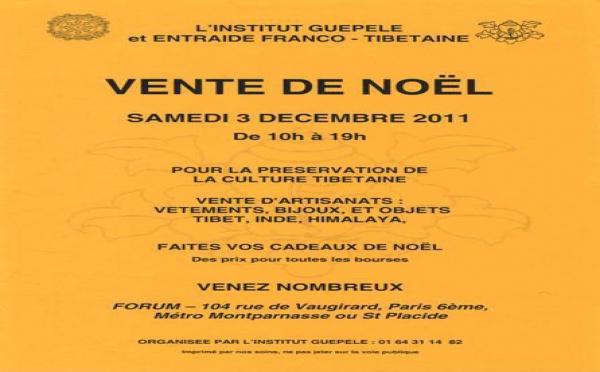 3 décembre 2011 : Vente de Noël pour la préservation de la culture tibétaine