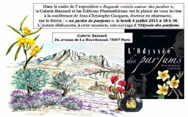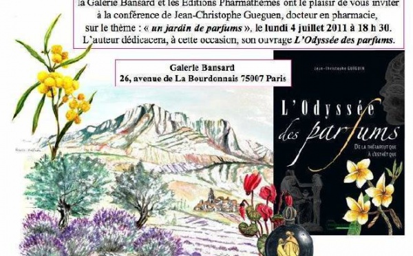"UN JARDIN DE PARFUM" de Christophe Guegen - dédicace Dans le cadre de l'exposition "Regards croisés autour des jardins" la galerie Bansard et les éditions Pharmathèmes ont le plaisir de vous inviter à une conférence de Jean-Christophe Guegen sur le...