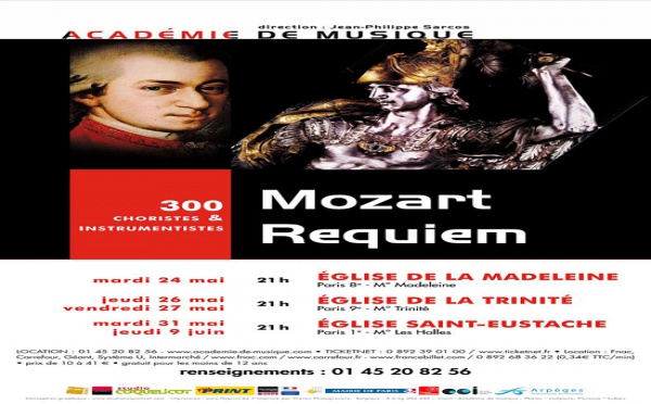 L’Académie de musique programme l'avant dernier concert exceptionnels à l'Église St Eustache pour clore sa 15e saison avec : Le Requiem de Mozart dans une version grandiose et inédite. 300 jeunes chanteurs et instrumentistes pour...